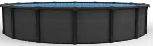 The Bellini is an mid level option. The dark color offers a sleek modern look to the above ground pool. It includes all resin top rails, uprights, and bottom track system. The wall is steel with an aluminum coating.